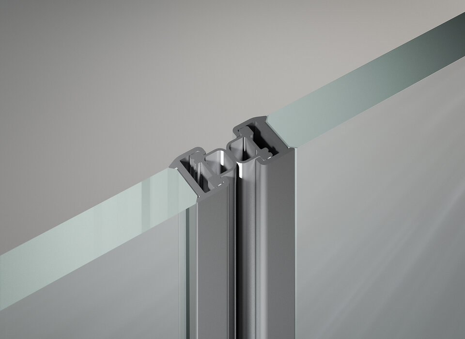 Bei Platzmangel kommt die Drehfalttür zum Einsatz. Die Elemente falten sich eng zusammen und sorgen so für den größtmöglichen Einstieg in die Dusche. |