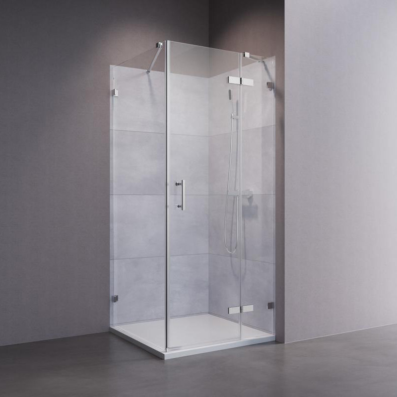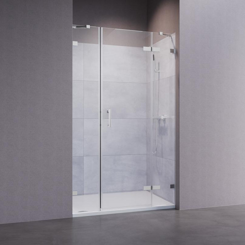 Individuelle Räume bedürfen individueller Duschwände. Stella 1C ist eine rahmenlose Drehtür mit 8 mm Glas. Die geometrisch geformten, in Chrom Glanz gehaltenen Scharniere garantieren dank Hebe-Senk-Mechanismus ein leichtes Öffnen und Schließen. Flächenbündig mit dem Glas verschraubt, versprechen die Scharniere zusätzlich eine besonders hohe Reinigungsfreundlichkeit.