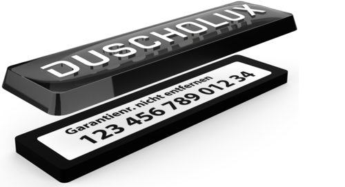 An jeder DUSCHOLUX-Duschwand ist ein Garantieclip angebracht.