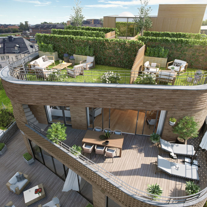 Das neue Viertel befindet sich im Zentrum von Asker in der Nähe des Bahnhofs. Auf diesem Grundstück wurde vom Architekturbüro Jarmund / Vigsnæs ein bis ins kleinste Detail hochwertiges Wohn- und Geschäftsprojekt entworfen.