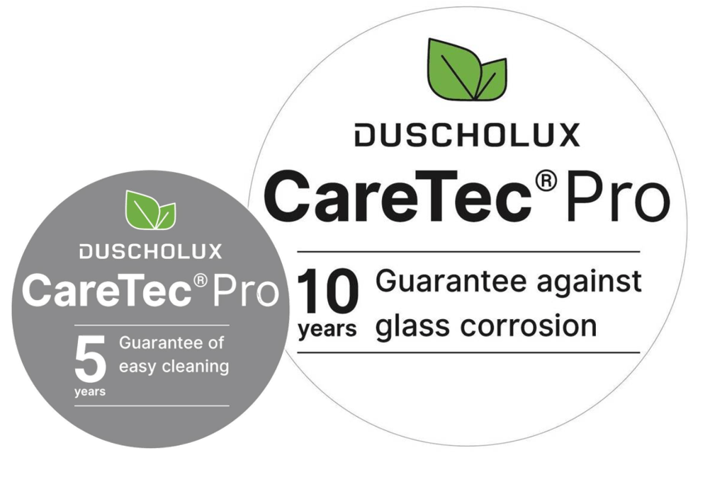 The water-repellent properties of CareTec make cleaning the glass much easier. After removing the water, limescale residues can be removed much more easily.