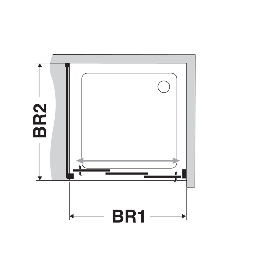 - Paroi de douche avec cadre d’une épaisseur de verre de 4 mm (pièces fixes) et de 5 mm (pièces de porte)