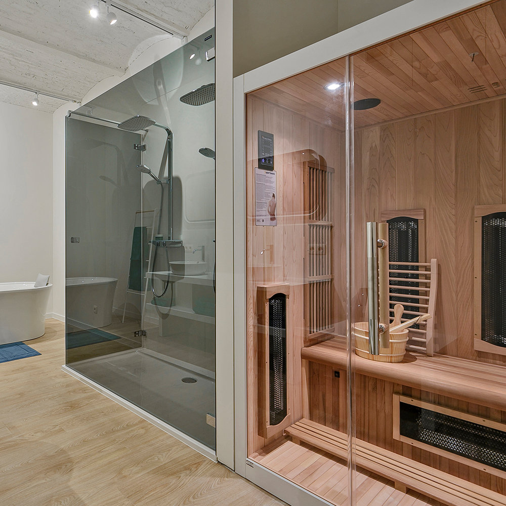 Ambito di fornitura: 3 x Bella Vita 3 Walk-in, 2 x Bella Vita 3 con porta scorrevole, 1 x Collection 3C con CareTec® Pro, 1 x Primeline Wall, Dimensioni, consegna e installazione